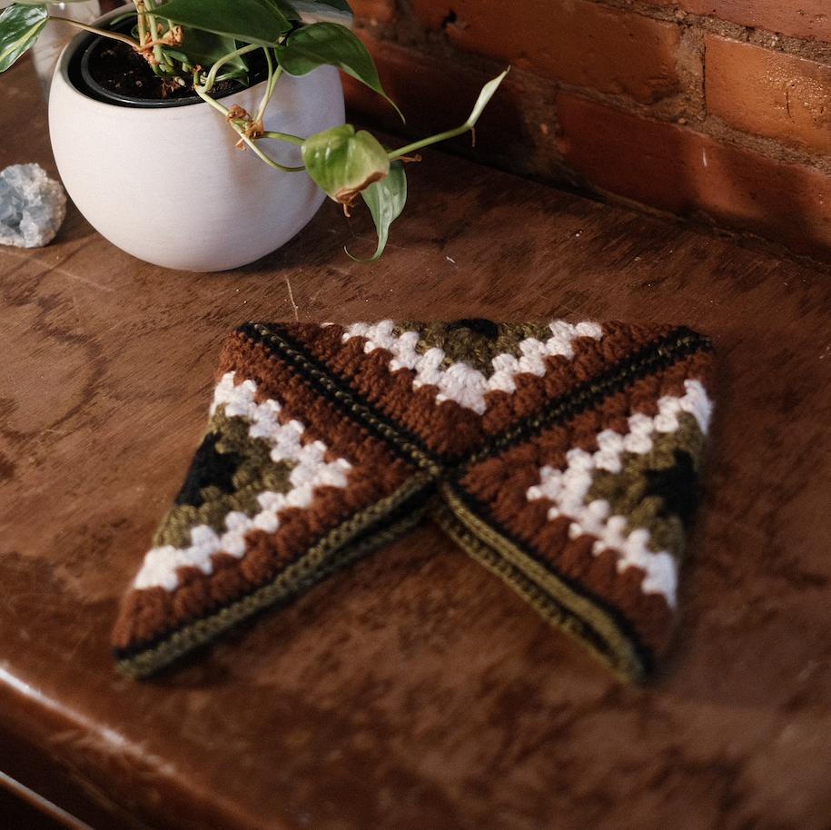 Add a touch of whimsy to your winter wardrobe with our cat ear hat! Handcrafted using colorful granny squares, this crocheted hat is purrfect for those looking to add a fun and playful touch to their outfits.