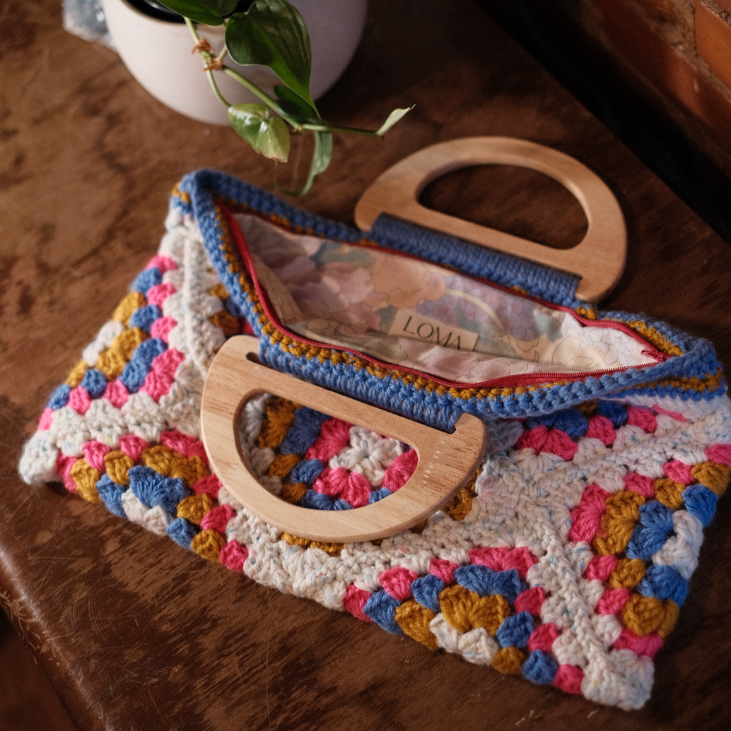 Indulge in a one-of-a-kind handbag, thoughtfully crafted with upcycled materials and inspired by vintage charm. Each piece is a playful blend of style and sustainability, bringing new life to forgotten fabrics. Every bag is fully lined with upcycled textiles, giving it a soft, unique interior that’s as special as the outside. Designed with natural wood or bamboo handles, and some styles featuring zippers for added function, these bags are made to carry your essentials with personality and purpose.
